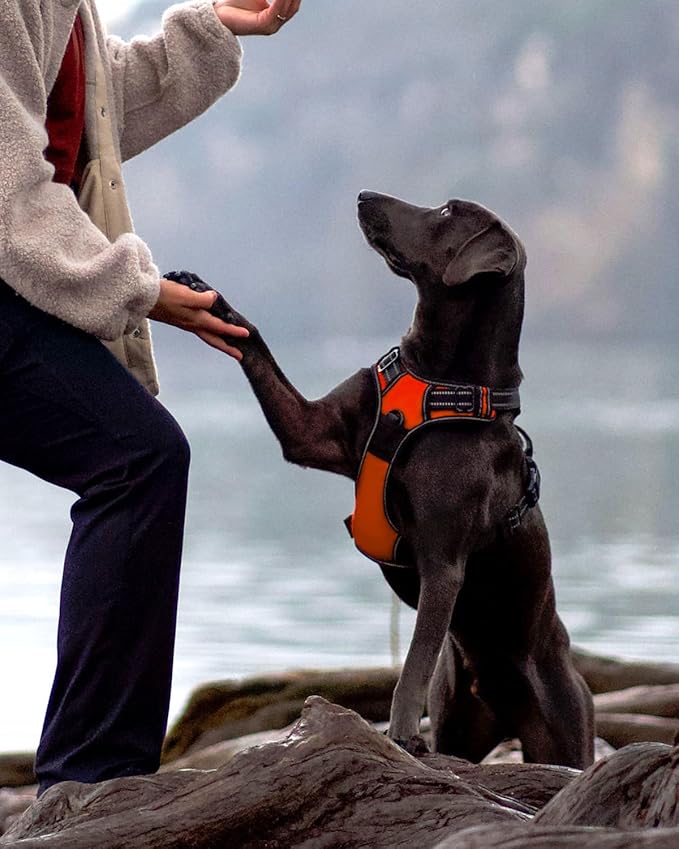 Joytale No Pull Dog Harness for Extra Large Dogs, Reflective Pet Vest with Front Clip, Adjustable Soft Padded Harnesses with Easy Control Handle for Training and Walking, Orange, XL