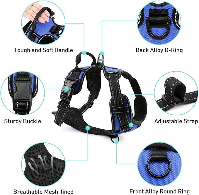 Joytale No Pull Dog Harness Medium Sized Dog, Reflective Pet Vest with Front Clip, Adjustable Soft Padded Harnesses with Easy Control Handle for Training and Walking, Navy Blue, M