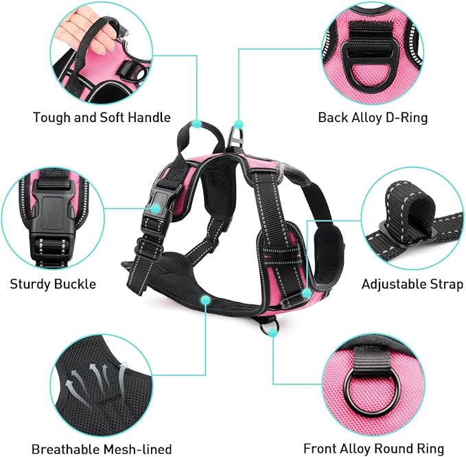 Joytale No Pull Dog Harness for Extra Large Dogs, Reflective Pet Vest with Front Clip, Adjustable Soft Padded Harnesses with Easy Control Handle for Training and Walking, Pink, XL