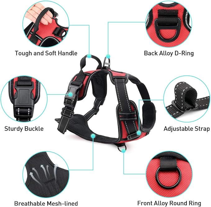 - Safety Details: The 360° highly reflective strips around the pet harness provides good visibility in the dark. Strengthen and widened handle allows you with maximum space to control your dog while walking through a crowd or walking past another dog