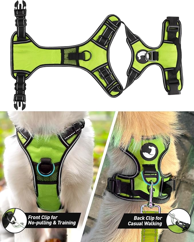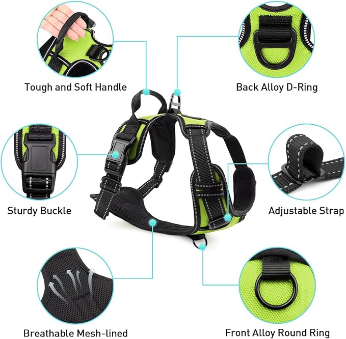 Joytale No Pull Dog Harness for Large Dogs, Reflective Pet Vest with Front Clip, Adjustable Soft Padded Harnesses with Easy Control Handle for Training and Walking, Green, L