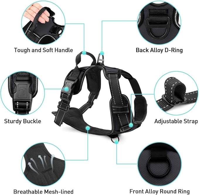 - Safety Details: The 360° highly reflective strips around the pet harness provides good visibility in the dark. Strengthen and widened handle allows you with maximum space to control your dog while walking through a crowd or walking past another dog