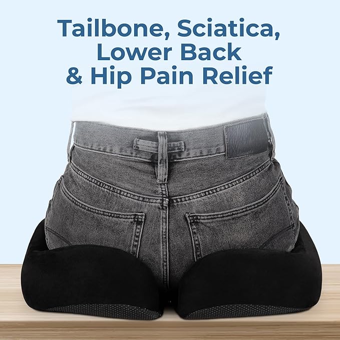 5 STARS UNITED Seat Cushion for Tailbone Pain Relief ā Large Memory Foam Cushion for Coccyx, Hip, Sciatica & Post-Surgery Recovery ā Wheelchair, Car, Desk, Gaming & Office Chairs, Black