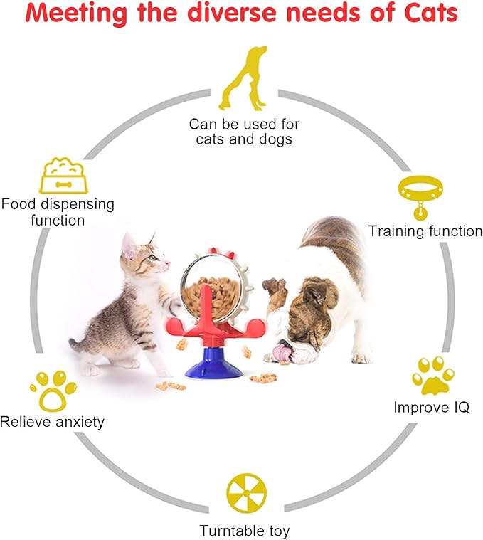 - 😻Multifunctional Food Dispensing Pet Toy: This is a multifunctional food dispensing pet toy. Remove the soft rubber stopper on the top and add pet food or snacks directly. The pet can turn this product with light force, the pet snacks will drop from the leaking hole to attract the pet's interest in playing. When the pet is playing with this toy, it can improve the pet's intelligence and slow down the pet's eating speed, effectively protecting the pet's dietary health.