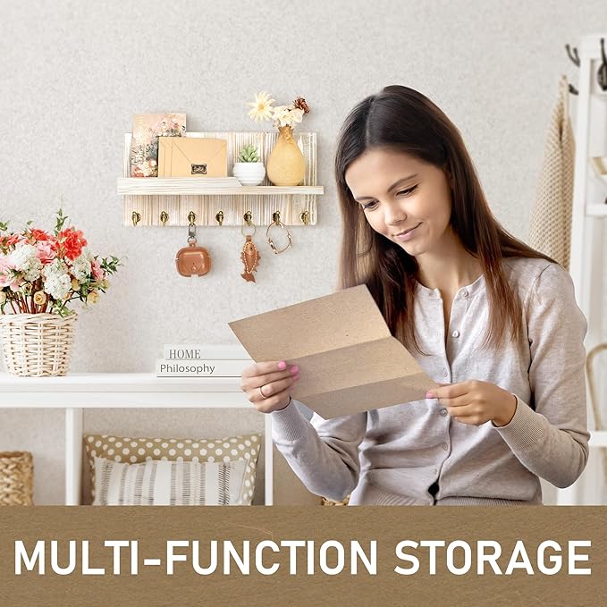 - 【AESTHETIC FARMHOUSE DECOR】Rebee Vision's key hanger wall mount is not just a functional accessory; it's an ode to classic home decor, turning the ordinary into a nostalgic masterpiece. Meticulously crafted for those who savor a touch of timeless elegance in every corner of their space. Infuse warmth and character into your home, be it the hallway, kitchen, living room, bedroom, laundry, apartment, or office, with this enchanting vintage mail organizer wall mounted.