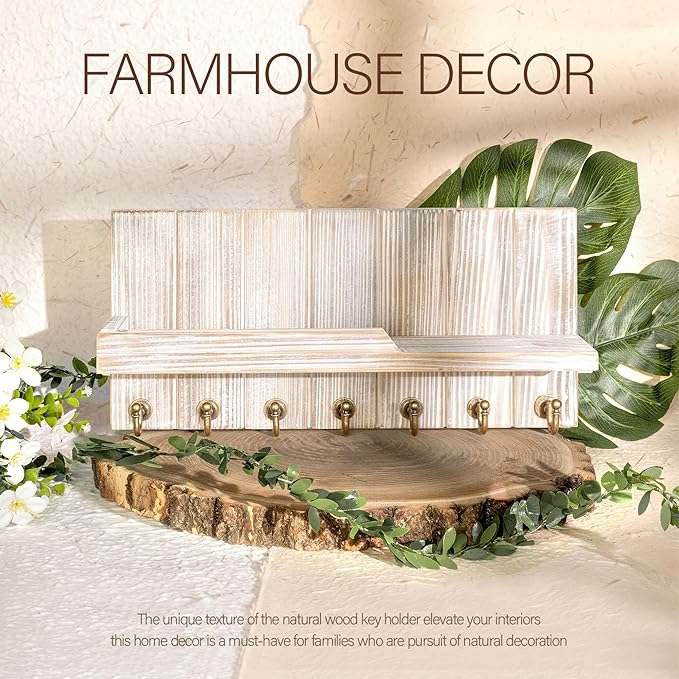 - 【TIMELESS WOODCRAFT】Dive into the enchantment of masterful woodwork. Each key holder for wall is not just a practical wall storage; it's a spellbinding ode to nature, infusing your surroundings with an embrace of warmth and charm. Elevate your farmhouse aesthetic with this timeless wooden marvel—a home essentials for new home.