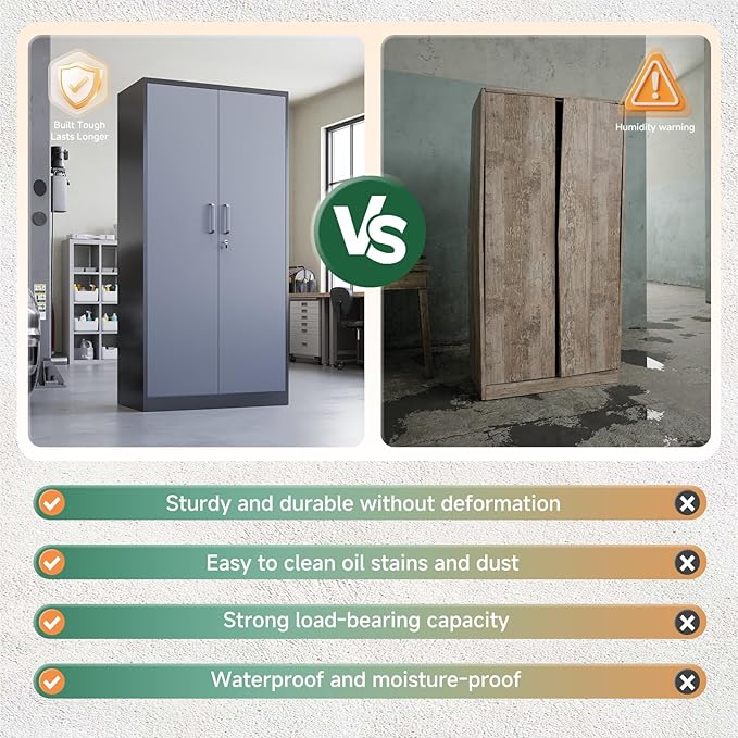- Easy Installation: Metal storage cabinet provides paper and video assembly instructions, the installation can be completed in about 30 minutes