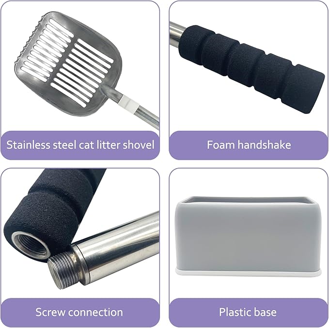 - [Long Handle Detachable Litter Shovel Set] Long handle detachable litter scoops make it easier for people to clean up cat litter without having to bend over. It's very easy to install and scalable. The long-handled detachable litter shovel and base are compatible