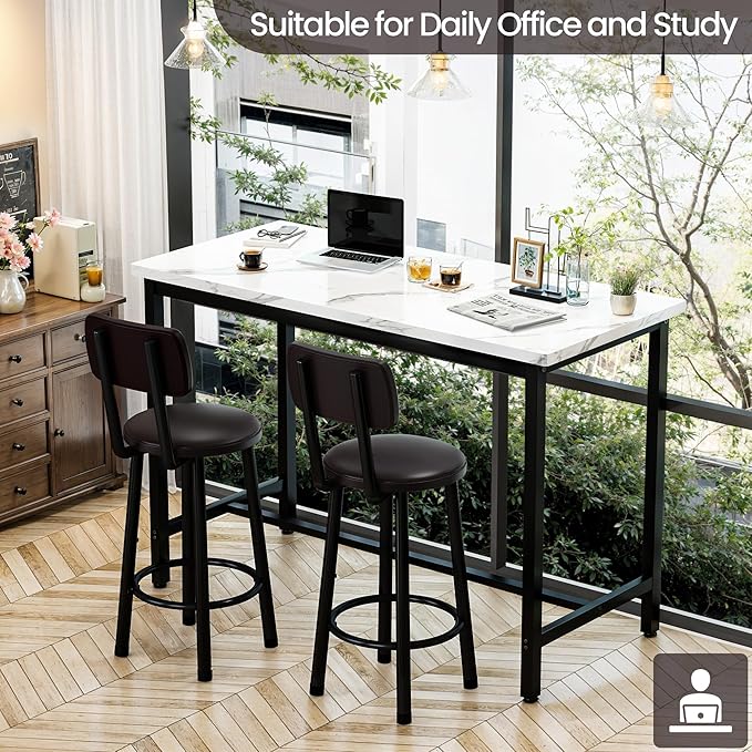 - 【SPACE-SAVING SIZE】Dining Table dimensions: 47.24" L× 15.75" W × 39.37" H Backrest Stools dimensions: 13.97" x 41.73" H This compact size is suitable for your living room, studio apartment, café, bar, or any small space.