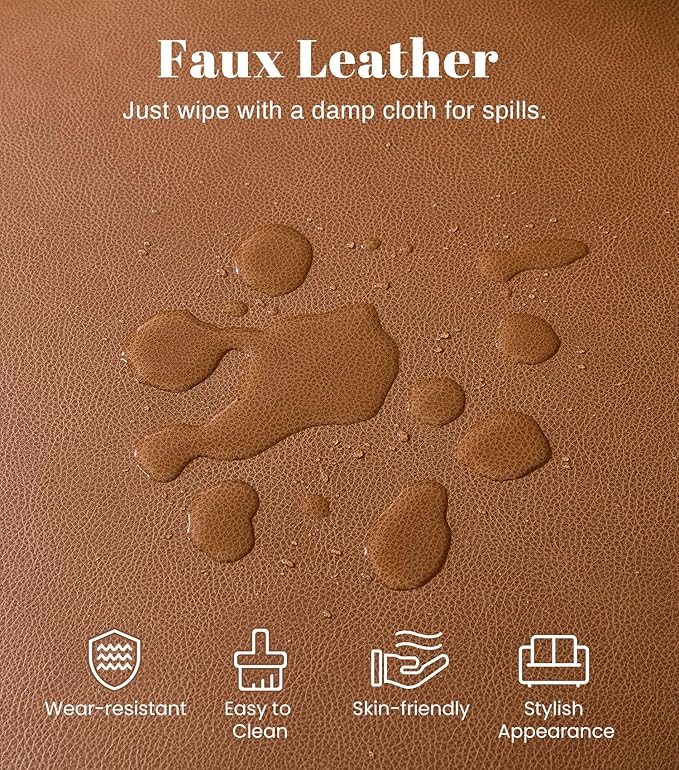 - Easy Cleaning and Assembly: This mid-century modern sofa is made from high quality faux leather, which is not only skin friendly and durable, but also easy to clean, you can wipe the surface of the sofa with a dry or damp cloth to remove all kinds of stains. In addition, detailed assembly instructions and a full set of assembly tools are included in the box, so you can install it in a short time.