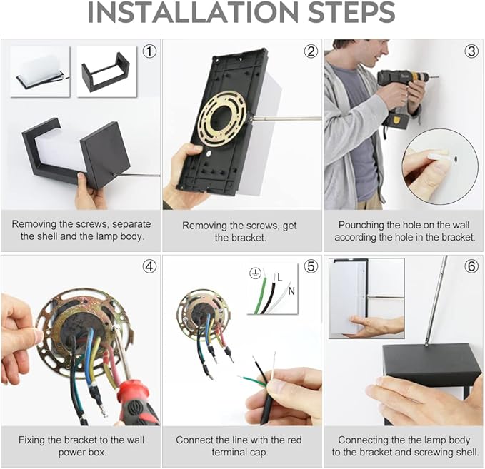 - 【Modern Exterior Outdoor Wall Sconces】Waterproof IP65, Outdoor / indoor use, weather resistant and rust resistant, well-constructed and high quality. Suitable for outdoor and indoor use. You can mounted it on the wall as a porch light in outdoor and Also you can mounted in the staircas corridor in Indoor. Multi-use for your choice.