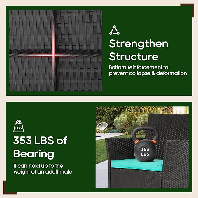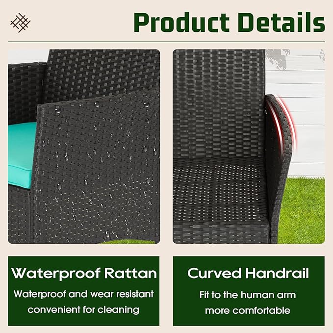 - SPACE-SAVING & VERSATILE: This patio conversation set fits small patios, balconies, and gardens. Compact and practical, this design saves space while providing easy storage for outdoor essentials.