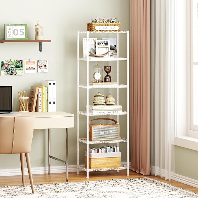 HOMEFORT 6-Shelving Unit, Adjustable Wire Shelving, Metal Wire Shelf Rack Organizer for Kitchen, Pantry, Closet, Bathroom, Laundry, White, 21" W x 11" D x 69" H