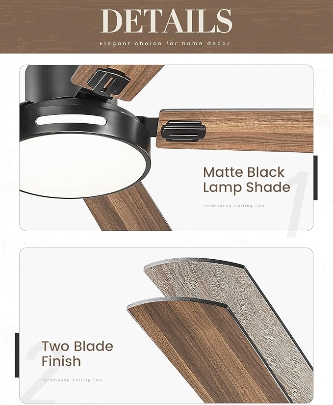 - Dual-Finish Wood Blades & Height Customization: Match any style with dual finish blades. Durable metal frame with adjustable downrod ensures optimal airflow in large spaces – ideal for master suites, covered patios, or open-concept living rooms