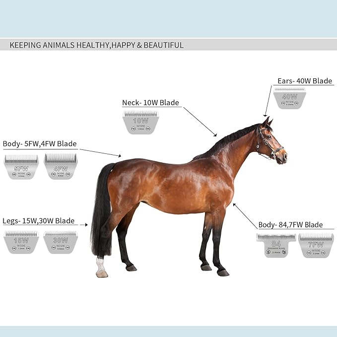 - ▶【SIZE】30W Cutting length 1/50 In(0.5mm),10W Blade Cutting length 1/16 In(1.5mm),7FW Blade Cutting length 1/8 In(3.2mm),5FW Blade Cutting length 1/4 In(6.3mm),4FW Blade Cutting length 3/8 In(9.5mm) for larger animals breeds