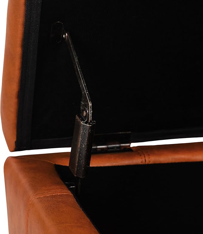 - Versatile Leather Storage Ottoman:Measuring 51" D x 18.5" W x 15.6" H,Your Go-To Storage Solution.This stylish yet sturdy storage ottoman bench combines premium leather craftsmanship with spacious hidden storage to organize any room.The ottoman with storage is perfect for tucking away living room blankets, storing bedroom pillows, or serving as a comfortable entryway seat - all while maintaining a sophisticated look that elevates your space.
