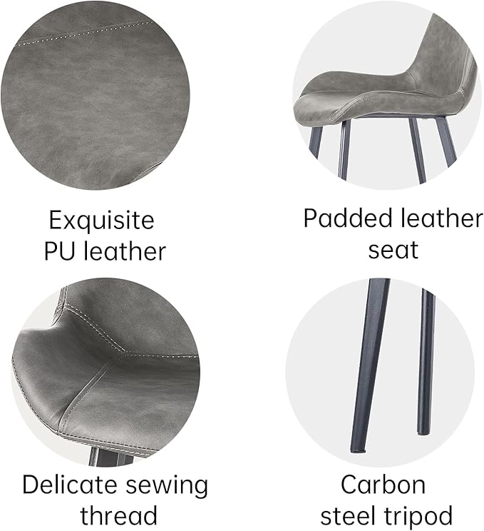 - Premium Leather Upholstered Dining Chairs: Our dining chairs are cushioned with premium faux leather and high resilient foam. The dining chairs have metal tubular legs that sturdily support the seat with a high weight capacity. Maximum weight-bearing capacity: 300 lbs. The seat and backrest of the stool are ergonomically curved, softer and thicker.