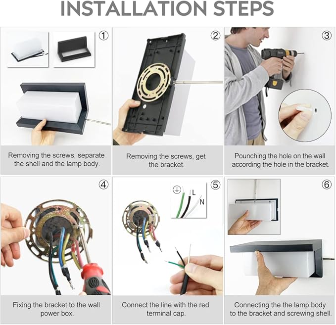 - 【Modern Exterior Outdoor Wall Sconces】Waterproof IP65, Outdoor / indoor use, weather resistant and rust resistant, well-constructed and high quality. Suitable for outdoor and indoor use. You can mounted it on the wall as a porch light in outdoor and Also you can mounted in the staircas corridor in Indoor. Multi-use for your choice.