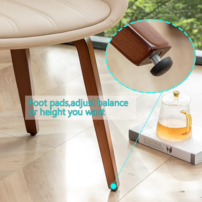 - ✔MID CENTURY MODERN DESIGN STYLE: YOUUGIOR Dining Chairs,with simple but elegent appearance to fit in almost various room styles.Upholstered design in the shape of vertical stripes makes dining chairs more unique.Bamboo backrest support design,premium faux leather upholstered and the solid wood legs make the chairs durability and longevity ,and bring you a comfortable sitting experience for a long time.With adjustable foot pads adjust balance, prevent noise and scratches on the floor.