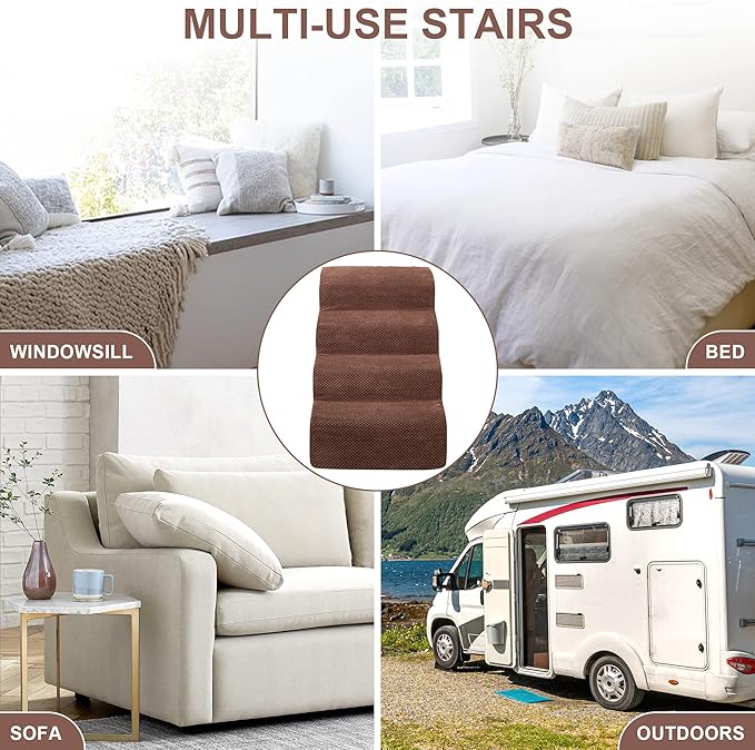 - [Decorate Your Home]: Our dog stairs are designed for high beds and couches to better match your living room, bedroom, or personal space. The color also matches any furniture in style without ruining the look of your indoor space