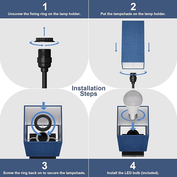 - 3-Way Dimmable Touch Table Lamp: Still worried about not being able to turn on the lights in complete darkness? You will love the sensitive touch feature that makes it easy to turn on and adjust the lamp's brightness to three different levels with a simple tap. Additionally, the navy blue bedside table lamp also boasts a memory function, allowing it to remember your last light settings.