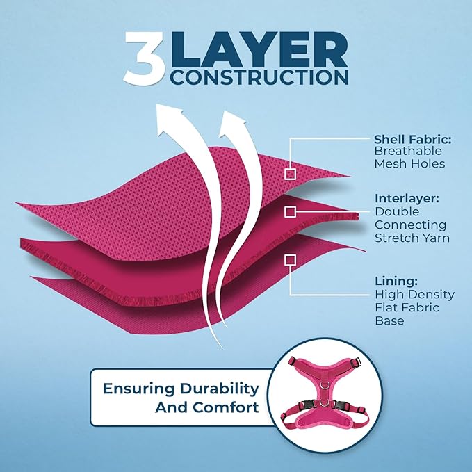- All Weather Air Mesh: Crafted from soft, breathable air mesh, this fully adjustable, lightweight, and escape-proof pet harness is perfect for walks all year round!