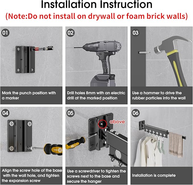- ◆Punching installation:This foldable clothes drying rack is installed with punched holes, making it more sturdy and secure. The package comes with a product installation manual, which is easy to install