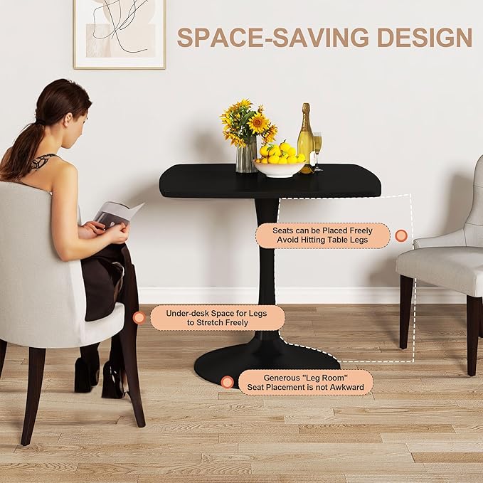 Recaceik Square Dining Table for 2-4 Person, 32 Inches Tulip Kitchen Table with Pedestal Base for Kitchen & Dining Room, Mid-Century Modern in Tulip w/0.71" Thickened Desktop, Black