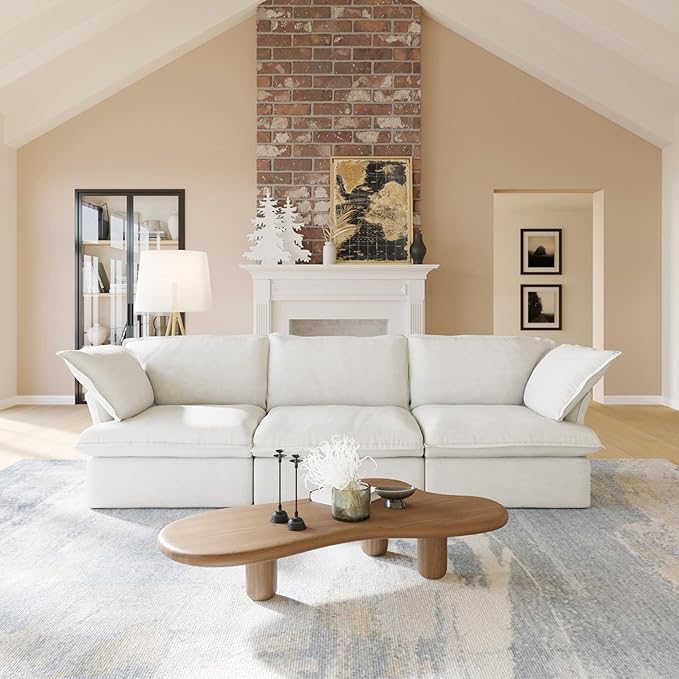 WJShome 122.82" Cloud Modular Sectional Sofa, Modern Comfy Couch Filled with Down, Minimalist Wide Deep Seat Couches for Living Room Apartment Lounge Bedroom (White, 3 Seater)