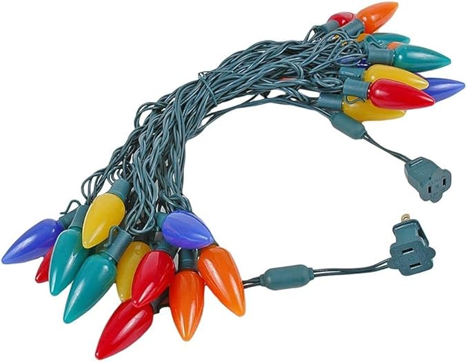 Novelty Lights 25 Feet 25 Light C9 Ceramic Style LED String Lights, Multicolor, Pre-Lamped Christmas Lights on Green Wire, UL Listed Indoor/Outdoor, Connectable End-to-End