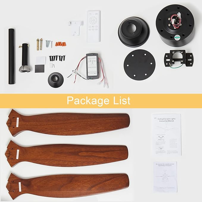 - 【Modern Walnut Ceiling Fan】: Our 52-inch ceiling fan features 3 wooden blades and a moisture-proof design, making it ideal for both indoor spaces and covered outdoor areas. Equipped with a remote control, this ceiling fan boasts a unique aesthetic that perfectly complements any home decor, elevating your space’s decorative appeal. Its minimalist retro style with a propeller-inspired design makes it a striking focal point.