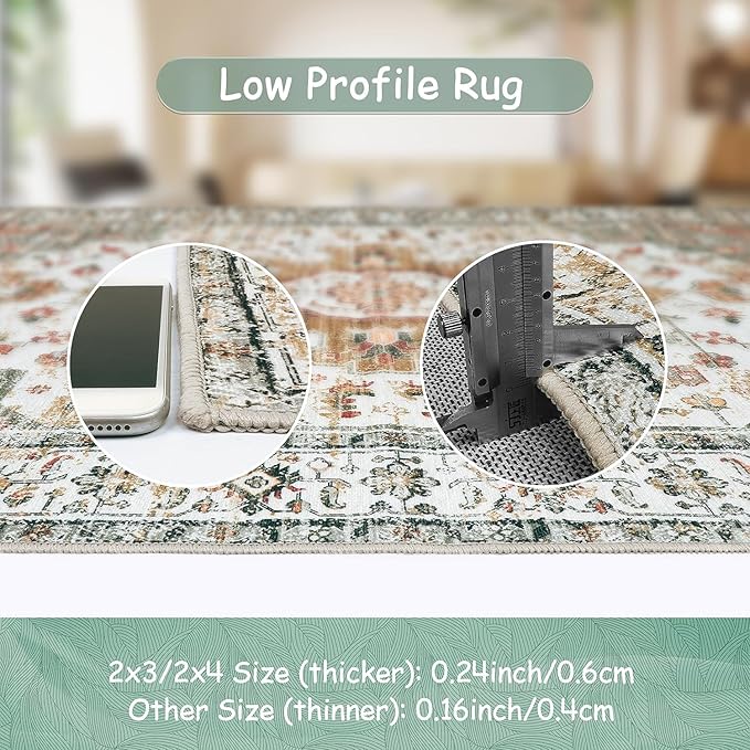 - [Designed for High-Traffic Areas] - Moynesa ultra-thin rug are made with everyday use in mind, 0.16 inches piles allows for convenient placement in entryways, underneath furniture, never get caught beneath doors and won't create a tripping hazard. Robot vacuums can go over the ultra-thin rug and will not get stuck on it.