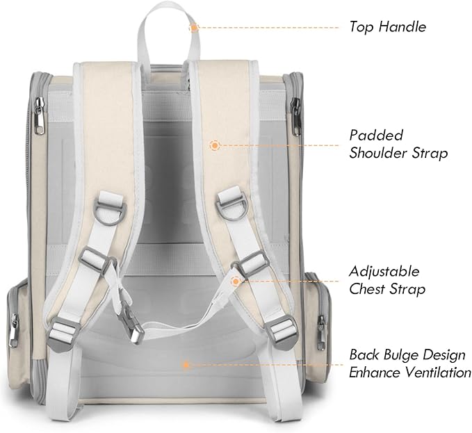 - Foldable & Ergonomics Cat Bag Carrier: You can easily fold up your cat carrier backpacks and it will only take up very little space. With back bulge ventilation design, padded adjustable shoulder straps and chest buckle reduce the pressure on the shoulder, back and waist.