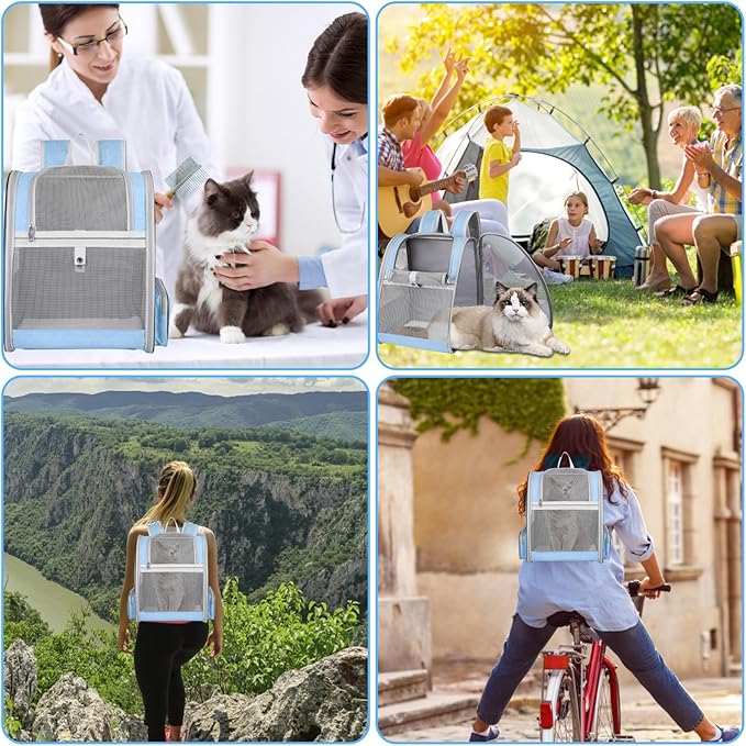 - Foldable & Ergonomics Cat Bag Carrier: You can easily fold up your cat carrier backpacks and it will only take up very little space. With back bulge ventilation design, padded adjustable shoulder straps and chest buckle reduce the pressure on the shoulder, back and waist.