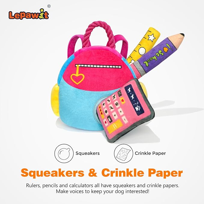 - Hide and Seek - The hide and seek dog toys will challenge your dog's ability to dig Schoolbag for hidden treats while keeping their spirits active.