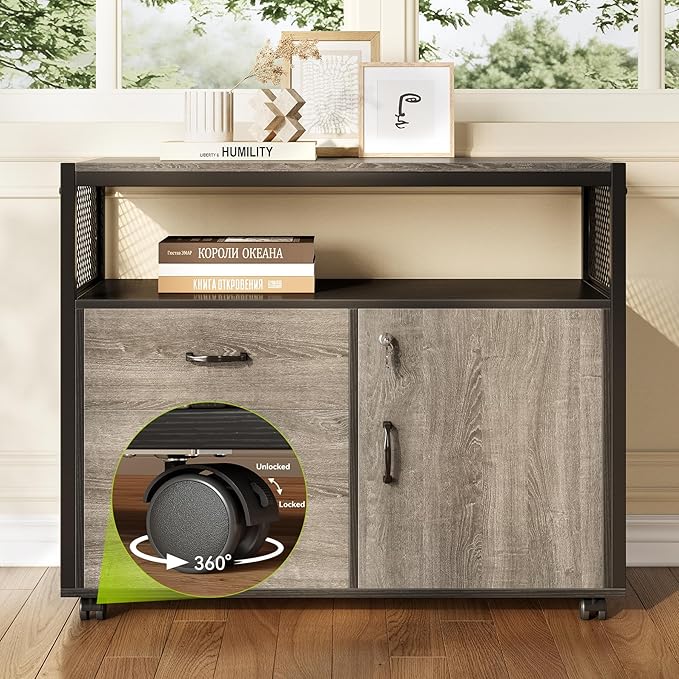 - Spacious Storage: The 32-inch lateral filing cabinet offers an additional mobile work surface, drawers for office supplies, and a lockable large concealed space for storing legal size files or other big items, thus keeping your workspace organized