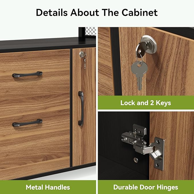 - Spacious Storage: The 32-inch lateral file cabinet offers an additional work surface, double drawers for office supplies, a lockable concealed space for storing confidential files or other big items, thus keeping your workspace organized