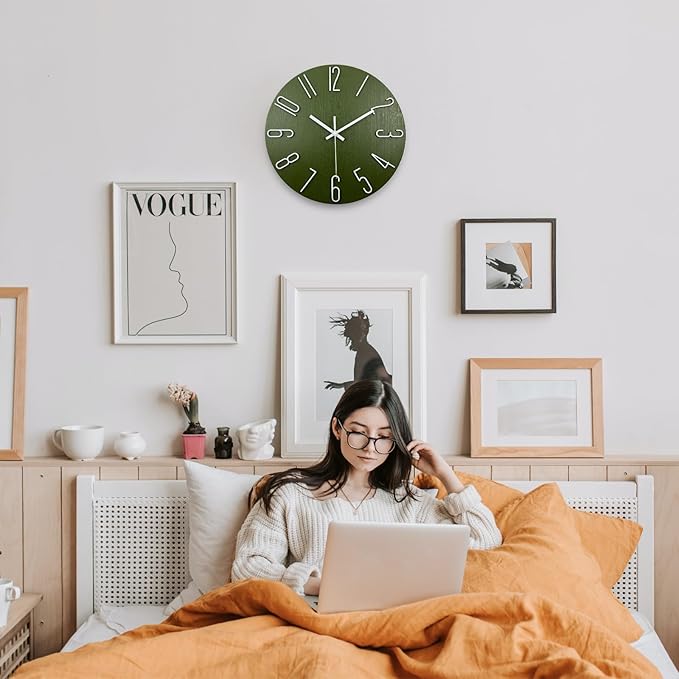Wall Clock, Silent Clock, Wall Clocks Battery Operated, 12 inch Modern Wall Clock, Suitable for Offices, Living Rooms, Kitchens, Homes, Schools (Green)