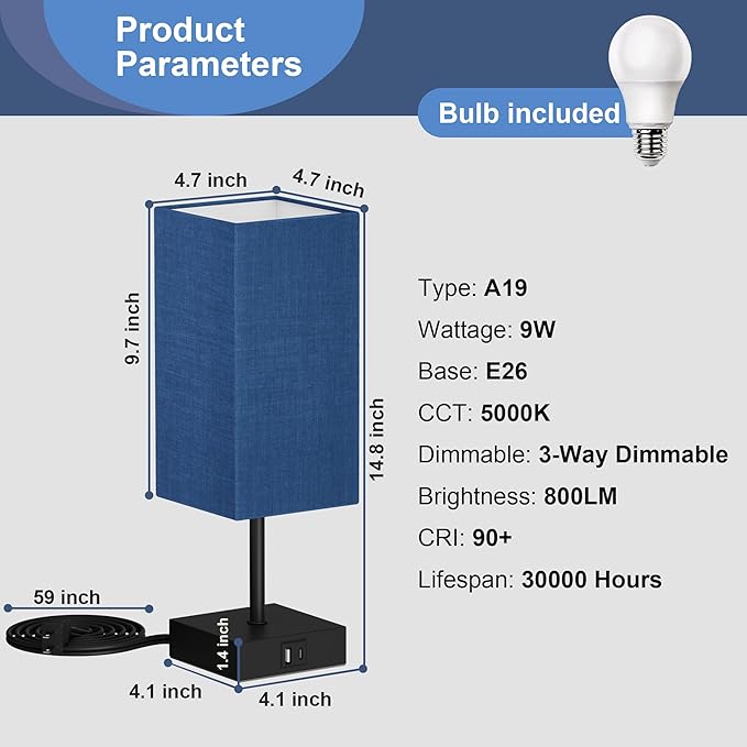 - Small Bedroom Lamp Included LED Bulbs: This bed side lamp comes with 3-way dimmable LED bulbs, 5000k daylight white, e26 base, emitting 800 lumens of bright white light. These lamps create a cozy atmosphere in your bedroom, suitable for those who have a preference for non-fluorescent lighting. The eye-caring LED bulb, ensuring eye protection. It enables you to unwind and read by your bedside without causing any eye strain or discomfort.