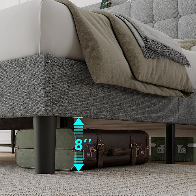 - Ample Under-Bed Space: The 8" storage space of the bed frame helps you optimize your bedroom, greatly improve the utilization of bedroom space, facilitate better storage of items for you, and keep it tidy
