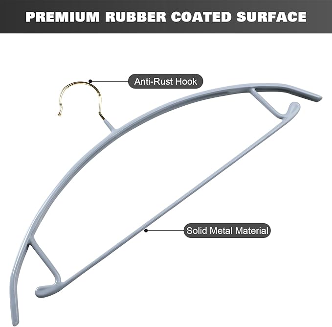 - HEAVY-DUTY CLOTHES HANGERS: The body of the hanger is metal dipped in a PVC coating. Durable heavy metal construction, slip-resistant vinyl coating protect your clothes from slipping off. They can handle everyday clothing items as well as heavier coats or jackets. Steadily hold heavy clothing of up to 22lbs; Say goodbye to flimsy hangers that bend or break!