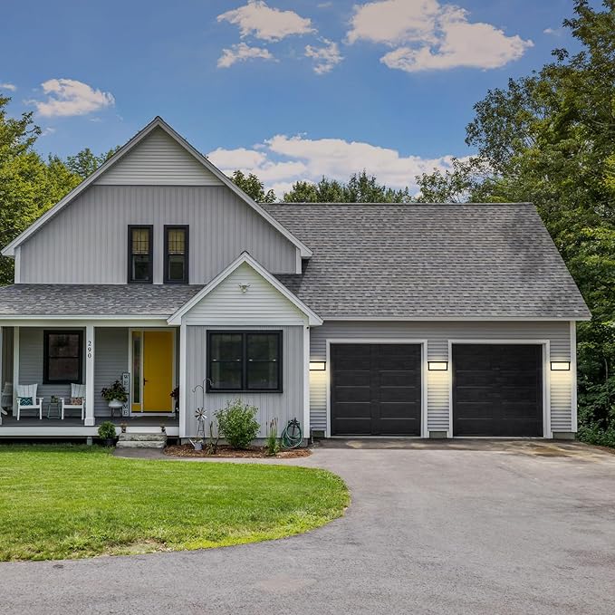 - 【Simple installation & LED Light Source】Rosykite porch lights outdoor wall mount is an integrated exterior light fixture and No bulbs needed,this outdoor garage lights fixture with American mounting plate and screws can be easily installed within 20 minutes. (International standard wiring: Red-Live Wire, Blue-Neutral Wire, Yellow-Ground Wire)Size: L 10.23" x W 4.72" x H 4.72"