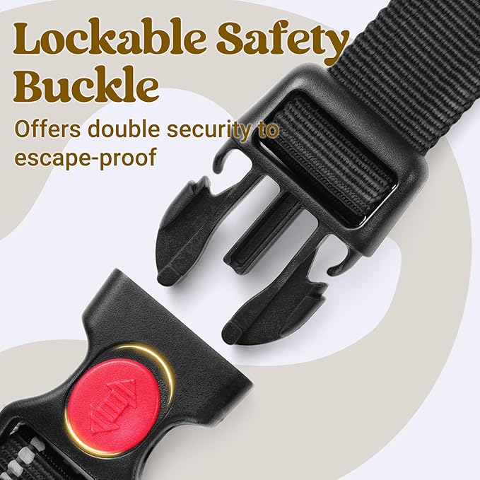 - Perfect Protection: The dog harness features sturdy and wear-resistant nylon Oxford fabric with reinforced stitching for high tensile strength. A lockable buckle at the neckline provides secure fastening, preventing accidental release under excessive force. Wide-area reflective stitching enhances visibility, making it suitable for nighttime use