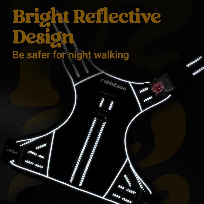rabbitgoo Dog Harness Medium Sized, No Pull Pet Harness with Soft Padded Handle, Adjustable Reflective Vest with 3 Buckles, Easy Walking Harness with 2 Leash Clips, Black, M