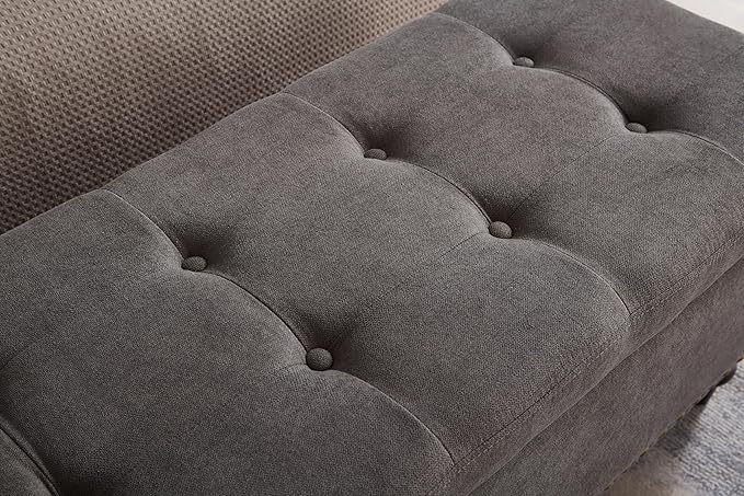 - Sturdy Cushioned Bed Bench with Storage : Exquisitely manufactured,our rectangular bedroom storage ottoman bench is built with solid wood and plywood frame and sits atop 4 dark brown finished solid wood legs. This bed storage bench is built to last for long time use.