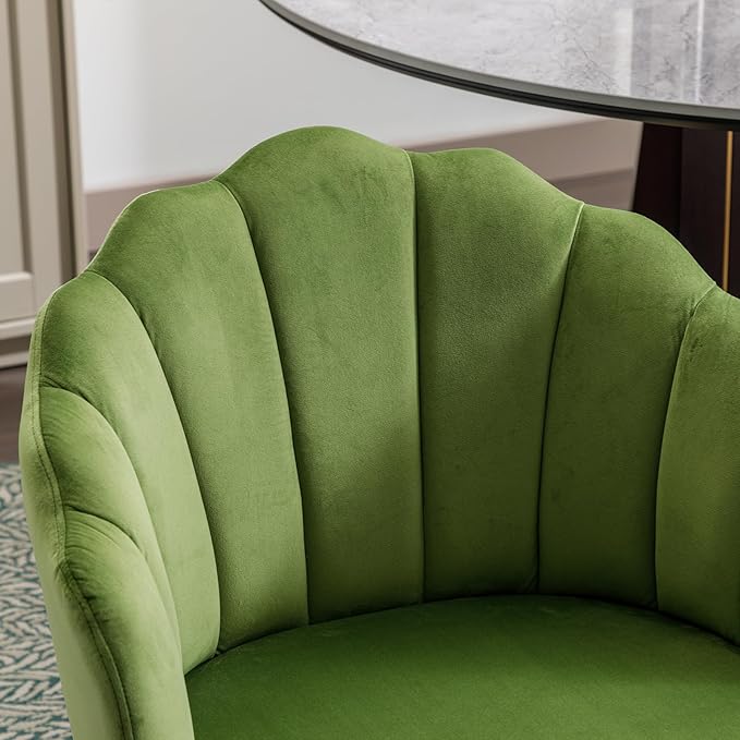 - [ELEGANT & CUTE DESIGN] Featured with semi-enclosed petal backrest and soft velvet fabric, this modern designed dining chair looks beautiful and fashionable. The pleasing appearance can decorate your indoor decor well, adding a stylish and cute atmosphere to your home