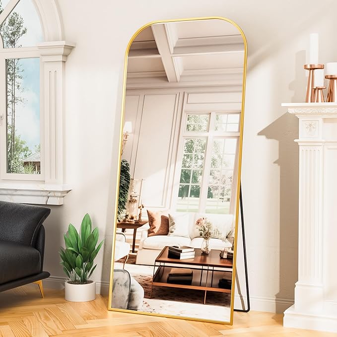 - 【New Arched Top Design & Lightweight】This Floor Mirror features an elegant arched top design, framed with sleek and durable aluminum alloy. Weighing about the same as a medium-sized dog, it is exceptionally easy to move and reposition. Its slim profile and lightweight build make it adaptable to any space while adding a sophisticated charm.