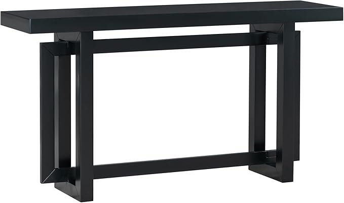 Knocbel Contemporary Console Table with Industrial-Inspired Concrete Wood Top, Minimalist Rectangular Entryway Table for Hallway Living Room Foyer Corridor, 59.1" W x 15.7" D x 31.7" H Black