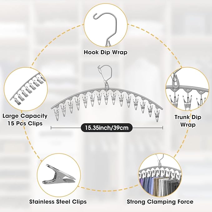 - Upgrade Design: The yoga pants hangers space saving has been upgraded to 15 stainless steel traceless clips, which makes the legging hanger can hold at least 15 pants or skirts and keeps your closet organized. Hangers and clips are integrated (No assembly is required) and the skirt hangers with clips can be hung directly in the closet, help you tidy your room, make more space for you, keep your home clean and tidy.