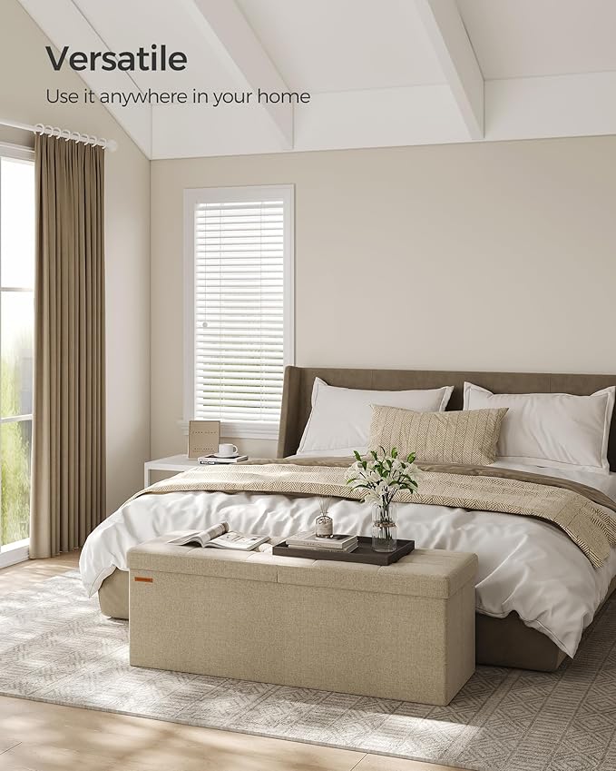 SONGMICS Mazie Collection - 43 Inches Storage Ottoman, Foldable Storage Bench with Flipping Lid, 660 lb Load Capacity, for Entryway, Living Room, Bedroom, Camel Brown ULSF076K01